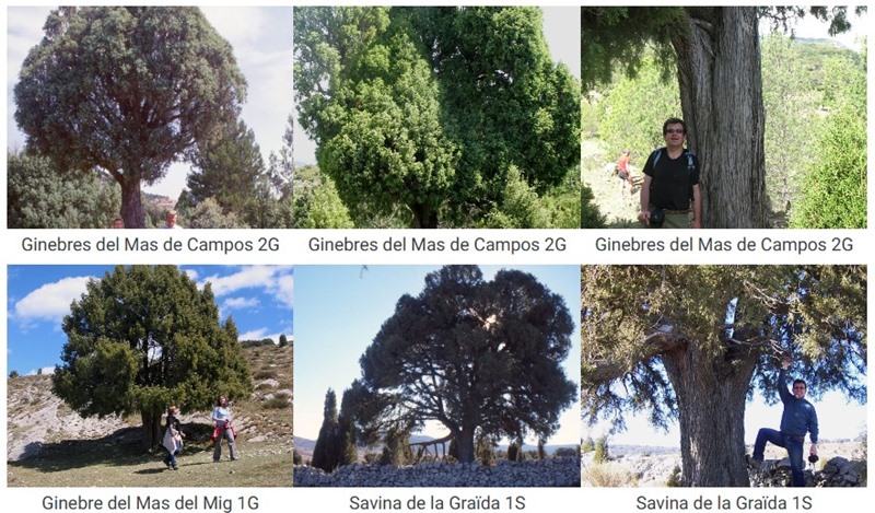 Que uns ginebres (arbusts) es guanyen el nom els fa ‘arbres’, com aquests del Mas de Campos; Otílio del Mas de Capote hi era, amb la Mercé. Els del mas del Mig van tindre el passeig de Carme i Holly. Altrament, la savina de la Graïda no és comuna, és ‘albar’, també coneguda com a ‘travina’, nom que també fan servir al Puerto. No se’n troba cap d’altra al terme de Vistabella.