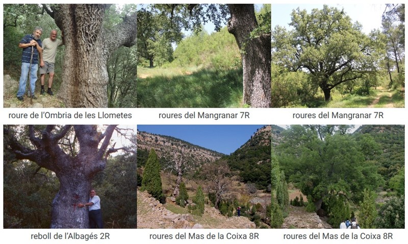 Ribeiro i Ferran ens ajuden a ataüllar la grandària del roure de l’Ombria de les Llometes. També Atzeneta, a més de la font del Roure i el Rourar (al mas de Vicent), compta amb aquests roures del Mangranar. Ramon Tena de l’Albagés ens va acompanyar per diversos espais de Vistabella, on també trobem els roures del Mas de la Coixa, vora el camí de Culla.