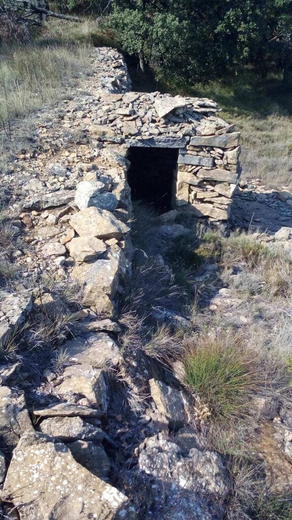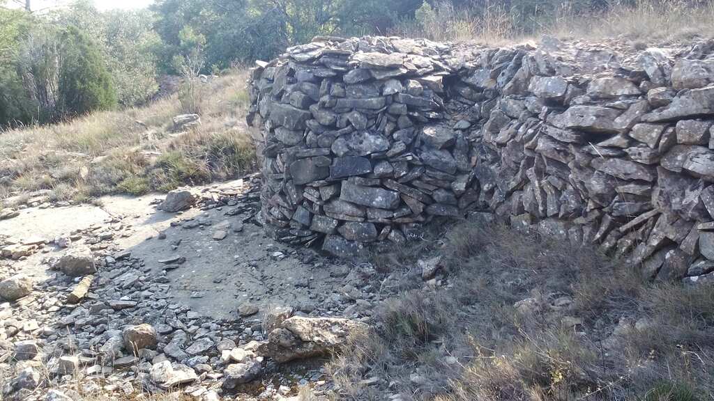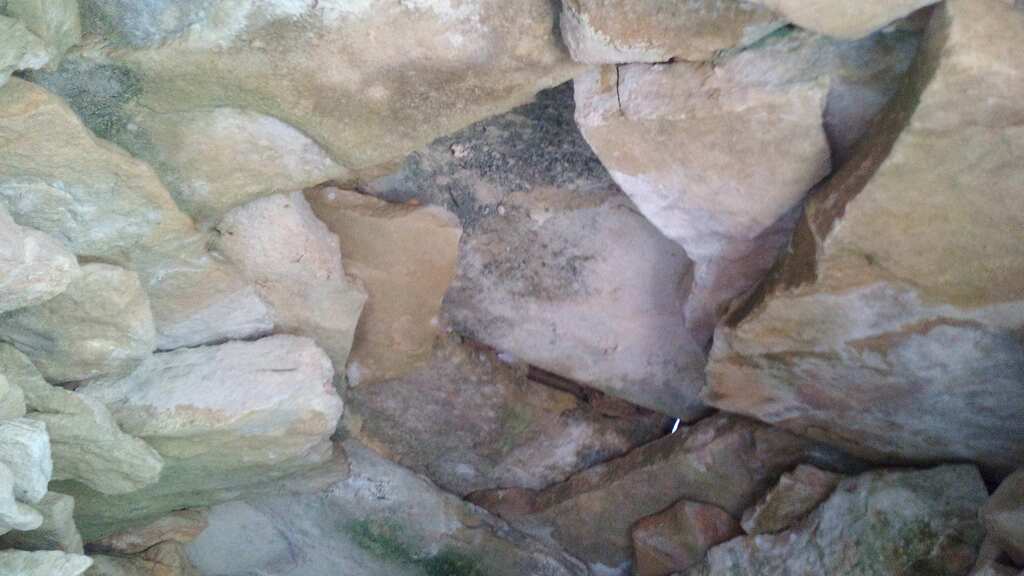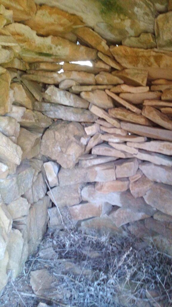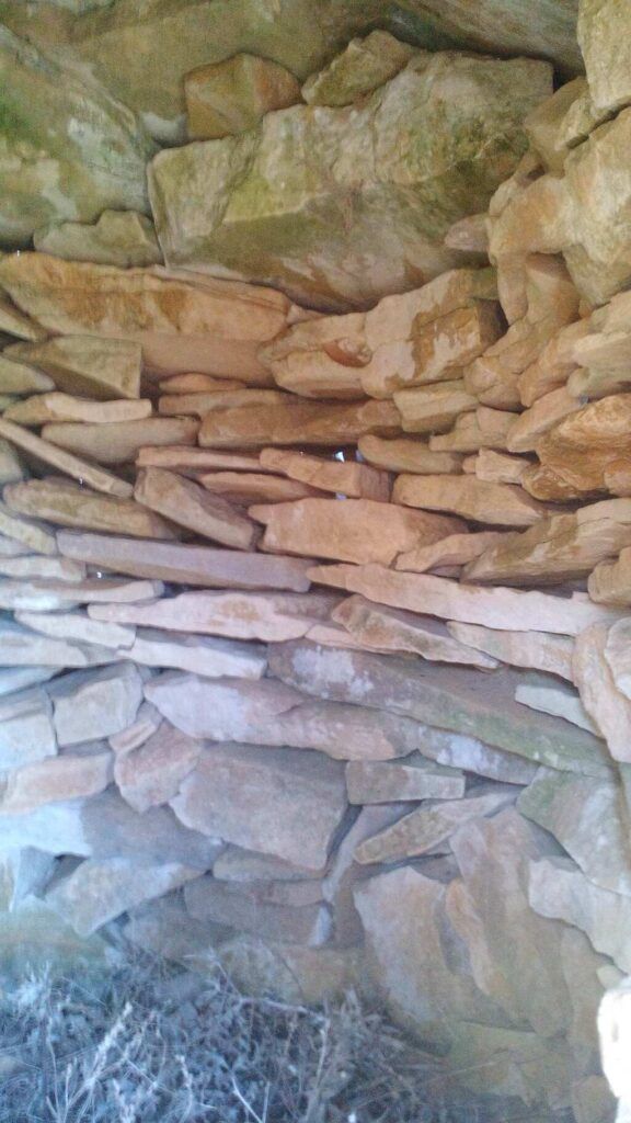 Cúpula primitiva, recoberta de cascall i lloses. Inici des de mur interior, a l'alçada de la llinda d'entrada.