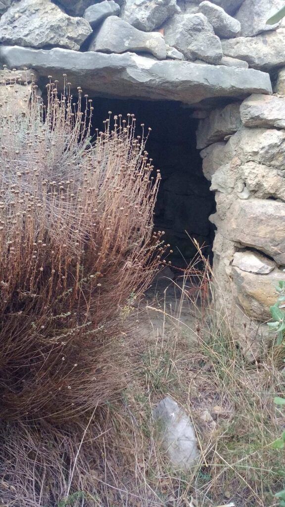 Cúpula primitiva, recoberta de terra, amb eixida de fums. Inici a l'alçada de la llinda d'entrada.