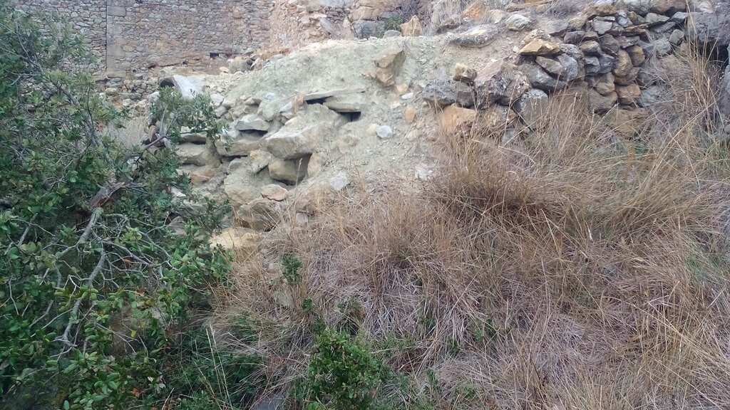 (parets exteriors i parets del tancat, enderrocades; falta recobriment en coberta)