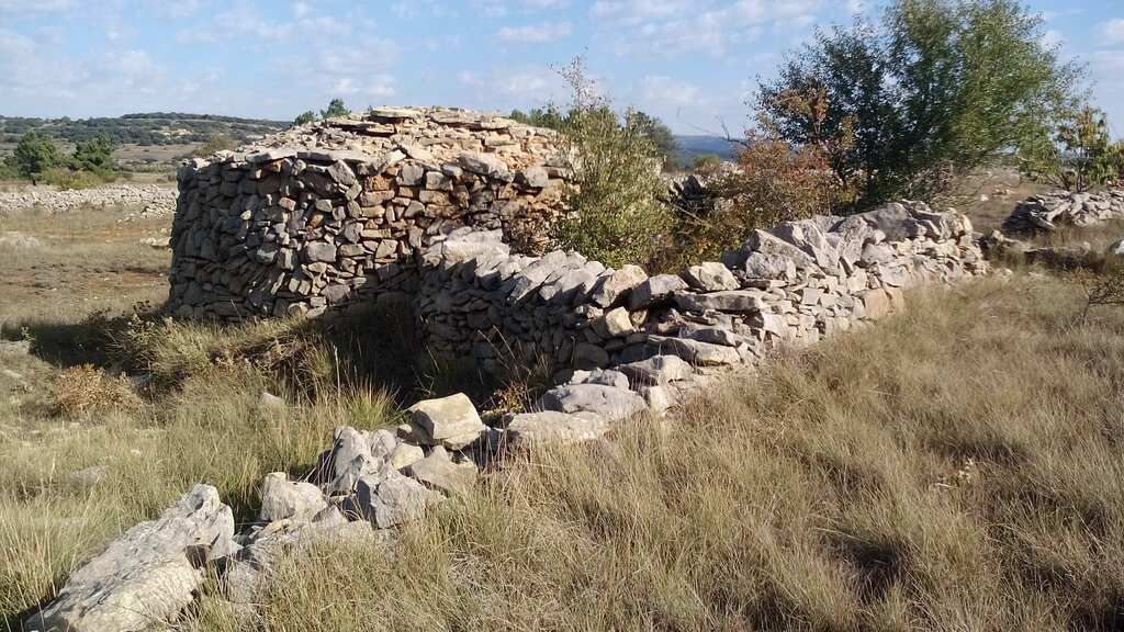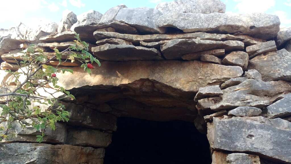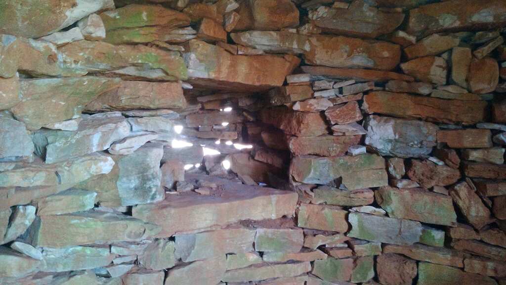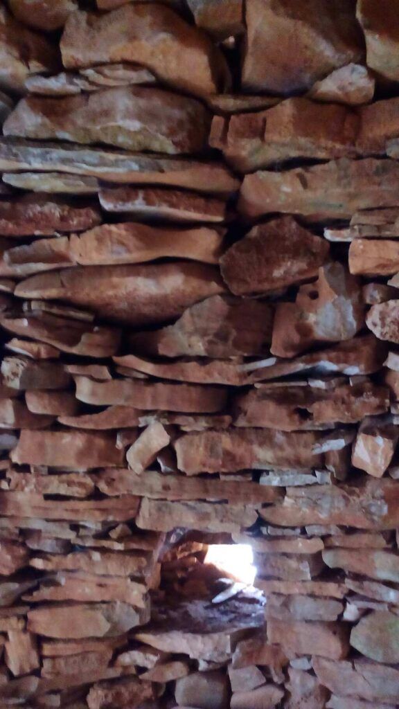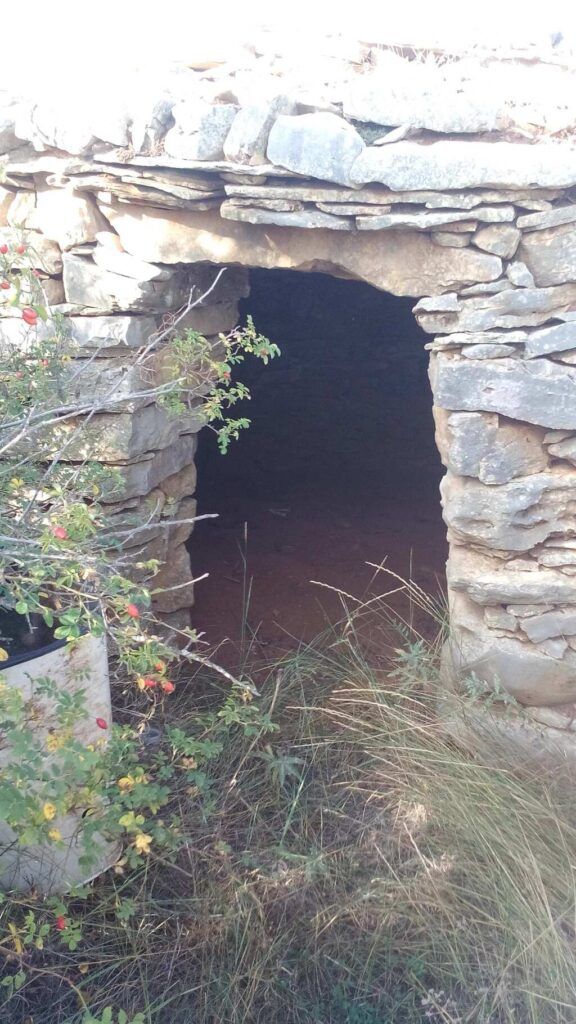 Cúpula primitiva, recoberta de cascall, lloses i terra, rematada amb grans lloses.