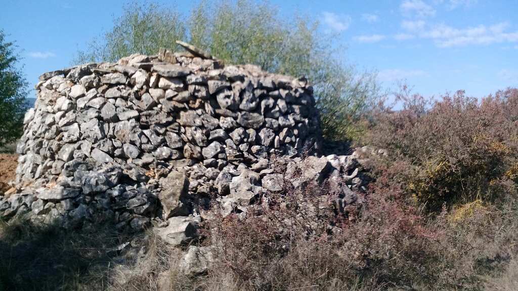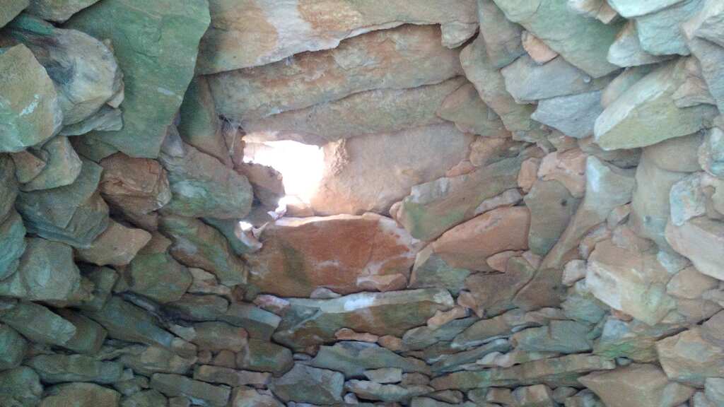 Cúpula primitiva, recoberta de cascall i terra, amb eixida de fums. Inici a l'alçada de la llinda d'entrada.