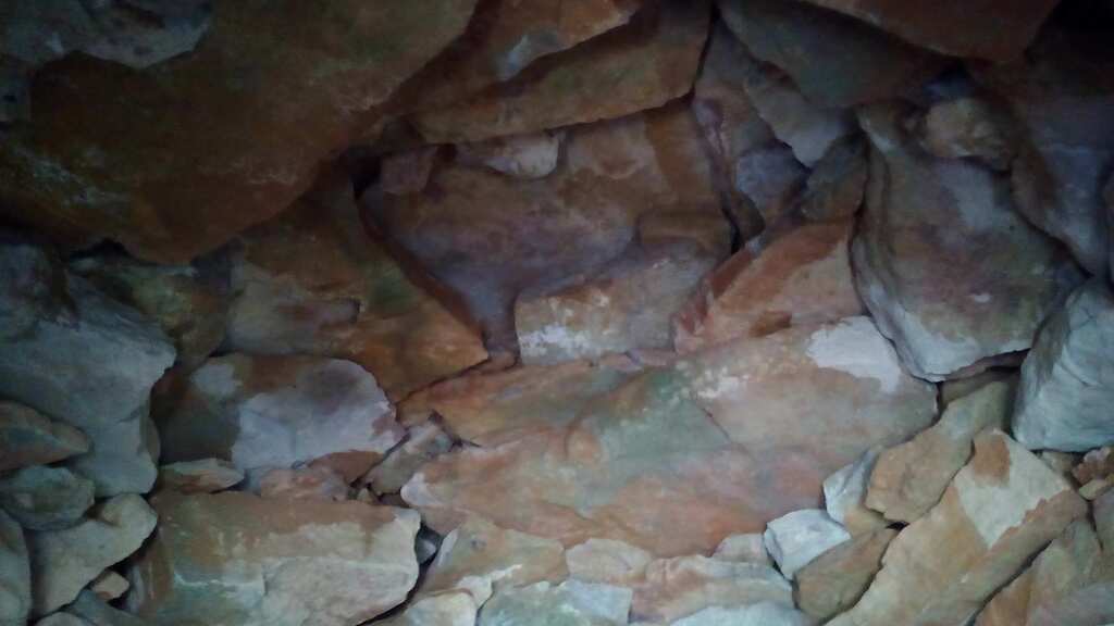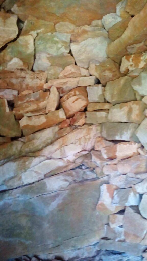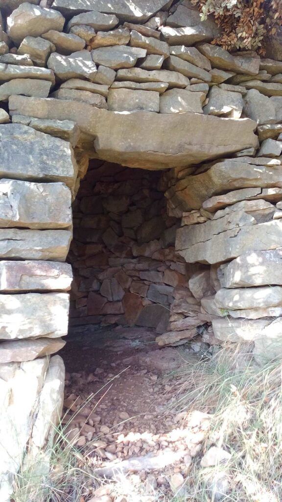 Cúpula primitiva, recoberta de lloses i terra. Inici des de mur interior, a l'alçada de la llinda d'entrada.