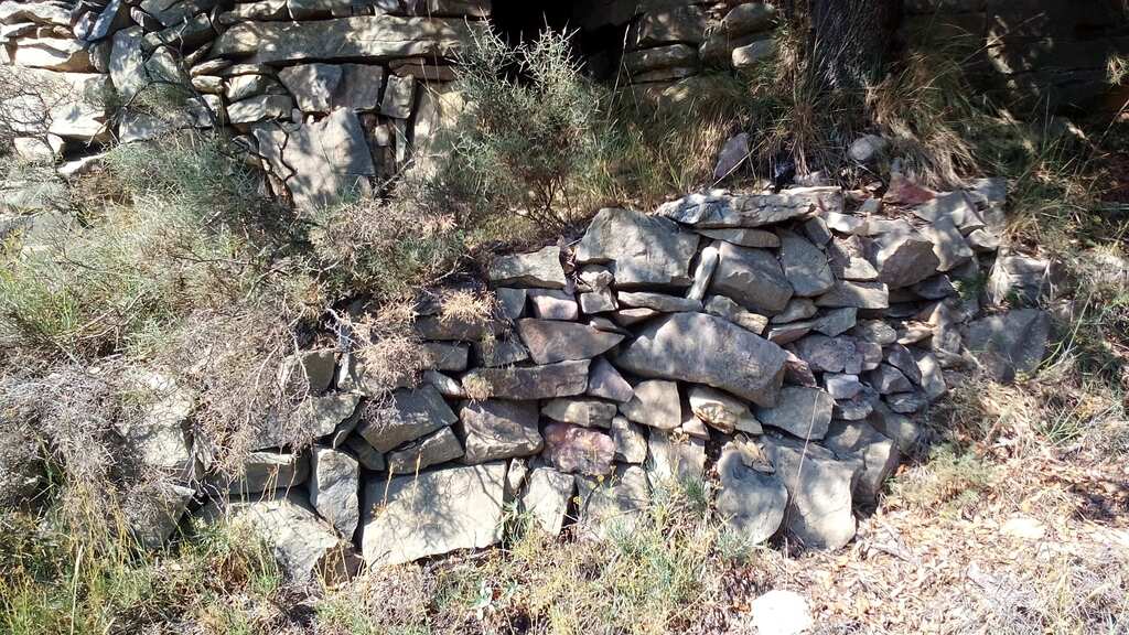 Els paraments exteriors són verticals, fets amb pedra irregular. Gruix dels murs: 0,60 m