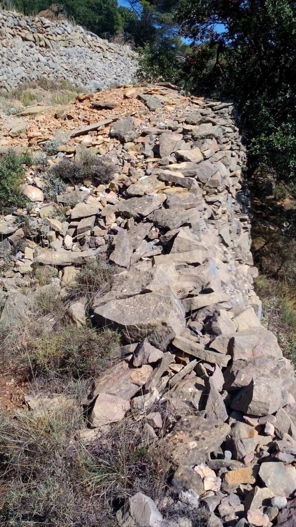 Parets verticals sobreeixint del marge amb coberta pronunciada.