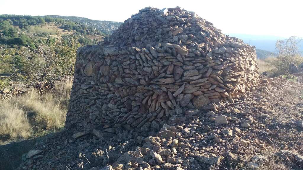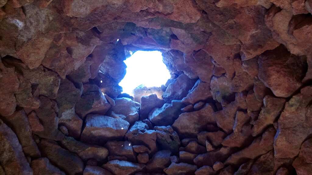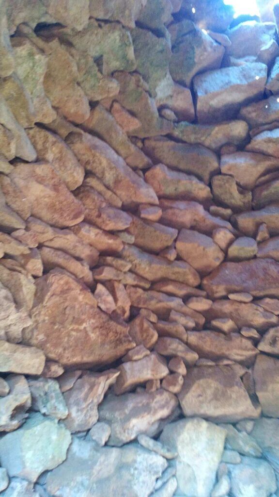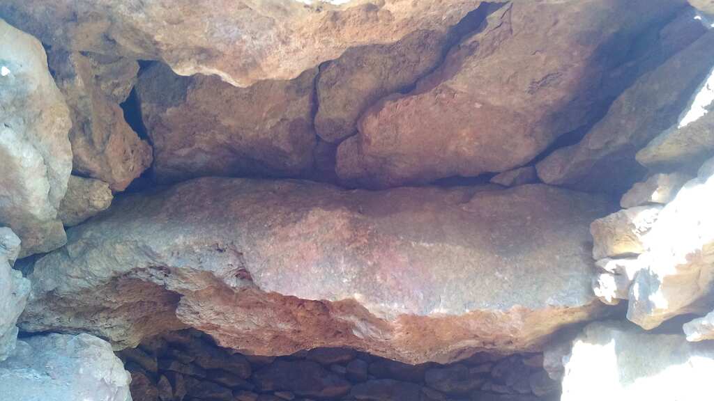 Cúpula primitiva, recoberta de cascall. Inici des de mur interior, a l'alçada de la llinda d'entrada.