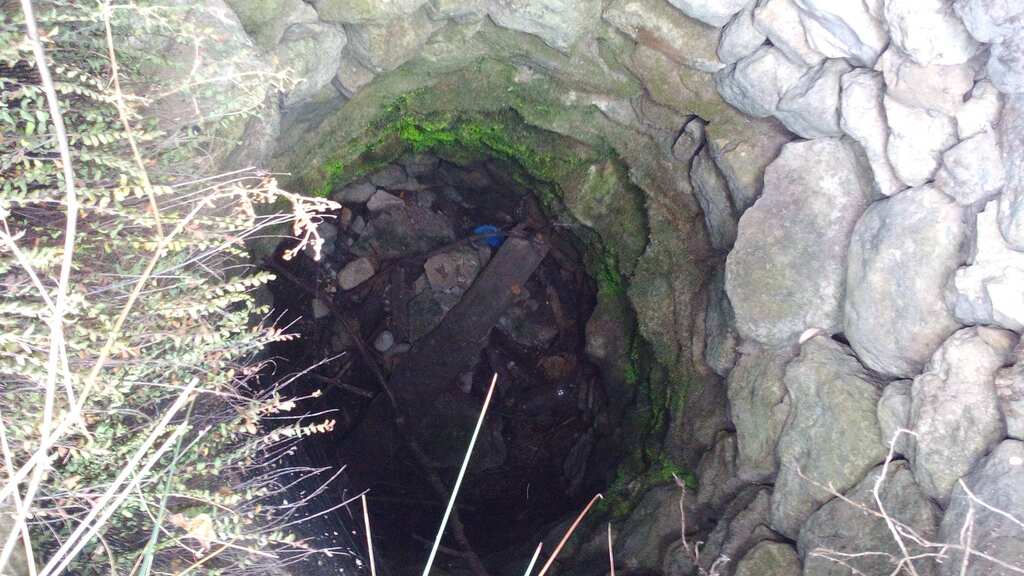 Plana, rematada amb grans lloses, sense recobriment, en correspondència amb la llinda de la boca del pou