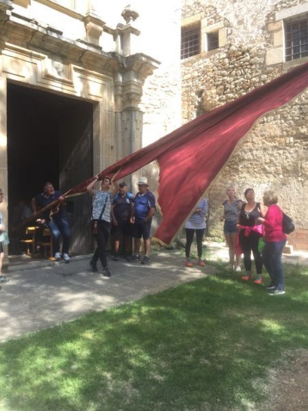 La grossa bandera de Sant Joan ix sempre fins al peiró per a donar la benvinguda i per a dir adéu a totes les rogatives i provessons que arriben a visitar l'ermita.