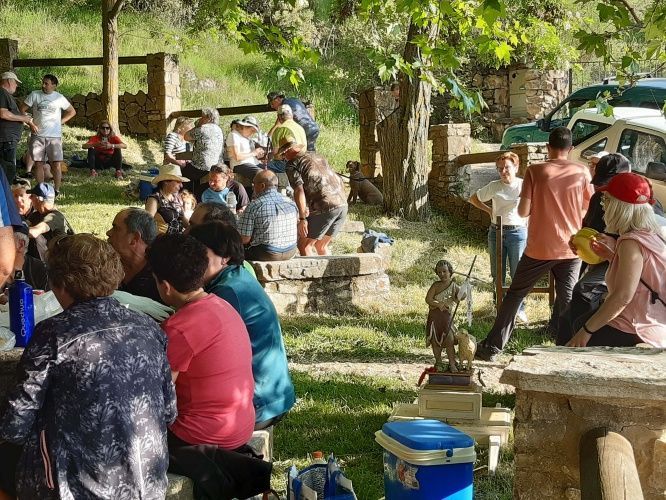 Descans per recuperar forces de cara al tram final de la rogativa. El Santjoanet menudet que porten els xiquets reposa a l'ombra també.
